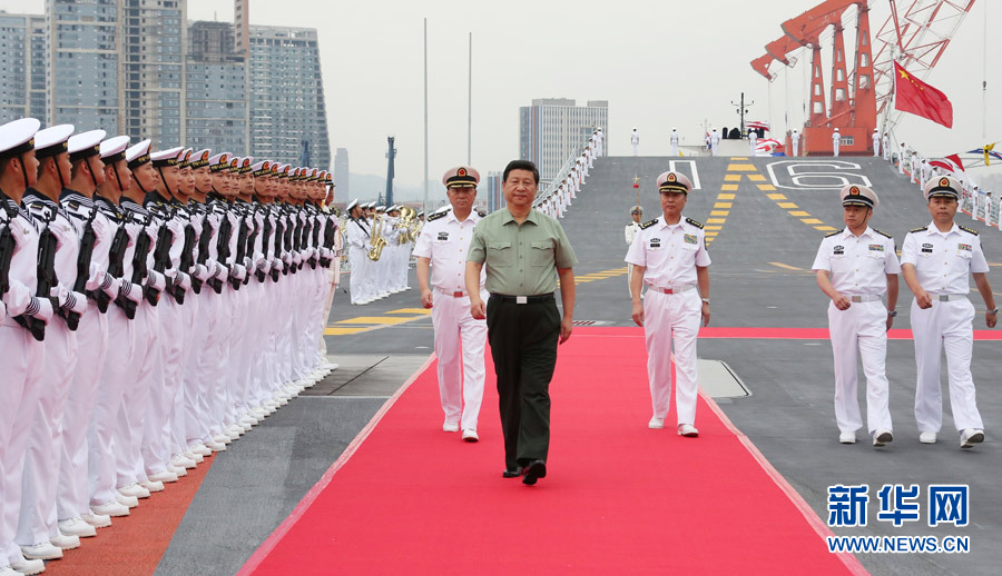 2013年8月28日下午,習(xí)近平檢閱遼寧艦水兵儀仗隊。 新華社記者 李剛 攝
