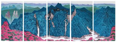 此時(shí)的陳家泠,早已不是當(dāng)年那個(gè)滿腔熱血的年輕教師,但從革命圣地汲取的力量和意志尚在,藝術(shù)創(chuàng)造的激情尚在。歷經(jīng)歲月的沉淀和藝術(shù)的積累,他對(duì)革命圣地的意象及其煥發(fā)的時(shí)代活力,有了更深層的理解與感悟,并將之轉(zhuǎn)化為具有濃郁“泠風(fēng)格”的藝術(shù)圖式。祖國山河的萬千氣象,因歷史而厚重,因時(shí)代而升騰——