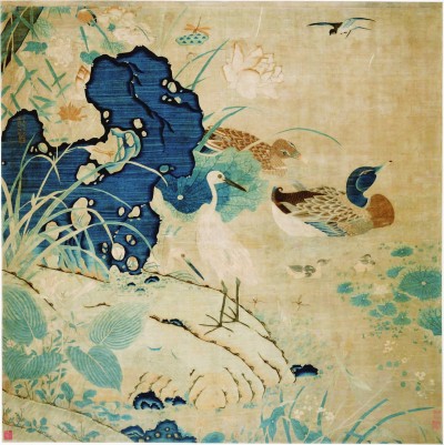 上海博物館藏朱克柔《緙絲蓮塘乳鴨圖》