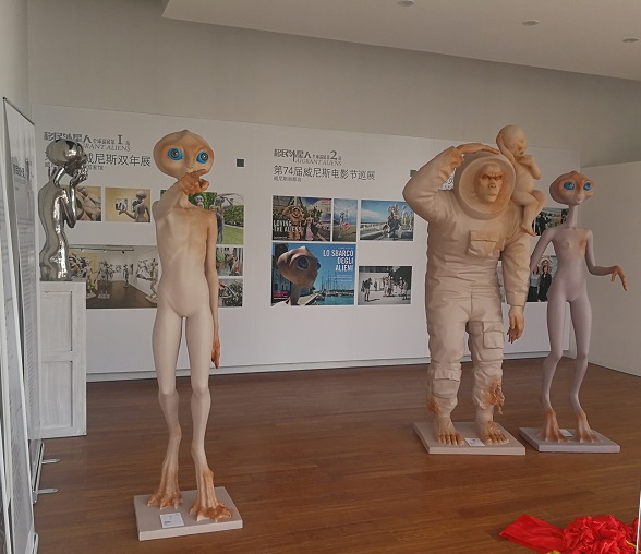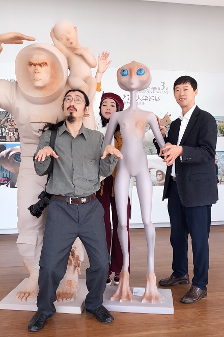 來自重慶畫院的跨界藝術(shù)家傅榆翔的全球巡回展覽《移民外星人》,是“科學(xué)與人類想象力研究中心”成立之后第一場活動?!兑泼裢庑侨恕繁蛔u為史詩般宏大而又指向未來的雕塑裝置作品。該作品采用“超現(xiàn)實”手法,通過移民外星人隱喻人類當(dāng)前和未來的困境和出路:一方面,科技正在帶領(lǐng)人類發(fā)現(xiàn)全新的宇宙;另一方面,人類自身卻異化于以往熟悉的環(huán)境。移民外星不單從社會人類學(xué)考證人類和歷史,也從未來學(xué)角度思考當(dāng)下的多元時代。
