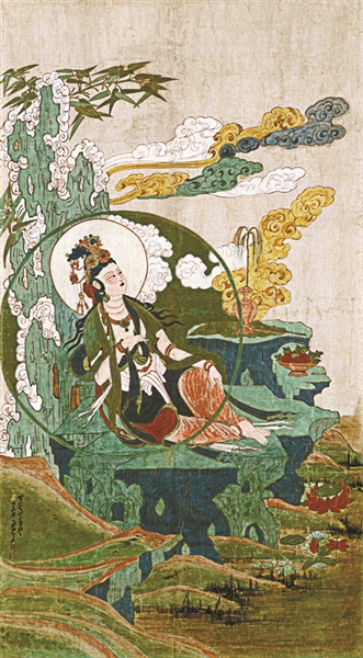 為市場唯一僅見的工筆重彩勾金水月觀音