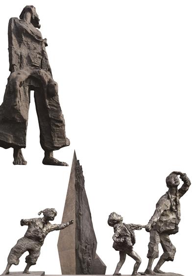 這一組雕塑被置于一條寓意逃難之路的水池中,塑造了一組因血腥屠殺而逃離家園的人。有年邁的兒子攙扶著八旬老母逃難,有被污辱的少女站在井邊決意以死洗刷恥辱,有僧人在逃難途中為死者合上含冤的雙目?!斑@些雕塑都有真實的原型,”吳為山表示,最讓他動容的是一個嬰兒趴在死去母親的胸前吮吸乳汁的雕塑,“這一組尤其讓人心痛。它源自南京大屠殺幸存者常志強一家的悲慘遭遇,當(dāng)時他的三個弟弟被刺刀刺死,媽媽被刺穿肺部。他哭著把最小的弟弟抱到媽媽身邊,讓小弟弟爬到媽媽胸前吃奶。這最后一滴奶水,是生命的結(jié)束也是生命的希望。第二天,幸存的人們發(fā)現(xiàn)母子倆已經(jīng)被嚴(yán)寒凍凝在一起,再也分不開,年邁的常志強每次講到這里總是老淚縱橫?!?/p>