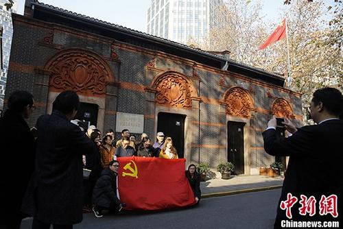 資料圖:民眾在中共一大會(huì)址合影留念。 中新社記者 湯彥俊 攝