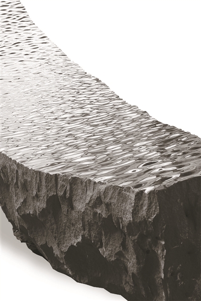 《雨》系列?!队辍废盗凶髌肥撬囆g(shù)家最重要的創(chuàng)作脈絡。如果《蹺蹺板》系列作品談的是人與人之間的關(guān)系,那么雨系列作品談的便是物與物之間的關(guān)系。用堅硬的花崗巖去模仿柔軟的水滴這是一件非常危險的事情。因為在當今流行的藝術(shù)創(chuàng)作方法中,用一種材料去模仿另外一種材料是常見的,也更容易獲得普遍的認同。而在雕塑藝術(shù)作品的創(chuàng)作中,這種方法體現(xiàn)得比繪畫或是影像作品更為明顯。說是一件危險的事情是對流行的警惕,因為這類作品永遠都要面臨解釋一件物為什么要模仿另一件物,一件物為什么不是另外一件物的終極問題。禪宗里面有一段高僧懷讓磨石為鏡以此點化馬道一的故事,講的便是石頭終究是石頭,不論如何打磨不成鏡子的故事,以此隱喻北宗禪打坐、念經(jīng)、持戒無法立地成佛的道理。但藝術(shù)終究不是為了講道理,參禪悟道,我們又回到“技”與“藝”的探討中。在沈烈毅《雨》系列作品中,我們能感覺到藝術(shù)家近乎極致的執(zhí)念,每一件作品都像修行般的苛刻,從選材到永無盡頭的打磨,讓作品的創(chuàng)作過程成為了作品最重要的一部分。區(qū)別于流行的雕塑創(chuàng)作,我們很難找到用有形物去模仿無形物,用永恒去模仿瞬間的作品案例。而沈烈毅用有形的石頭去模仿無形的雨,用永恒的石頭去模仿雨無形的瞬間便是作品的高明之處。在別人都談論物與物之間的區(qū)別的時候,藝術(shù)家賦予了兩種毫不相干的物體的聯(lián)系。