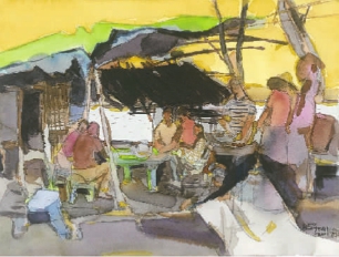 老撾湄公河邊人家(水彩畫) 周剛