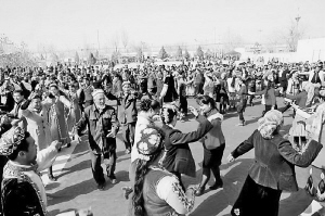 新疆莎車?yán)铣歉髯迦罕姎g慶諾魯孜節(jié)。資料圖片