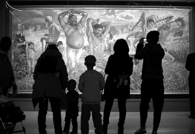 2月19日,在中國美術(shù)館“民族與時代——徐悲鴻主題創(chuàng)作大展”現(xiàn)場,觀眾在經(jīng)典畫作前駐足觀看。 本報記者 饒強攝