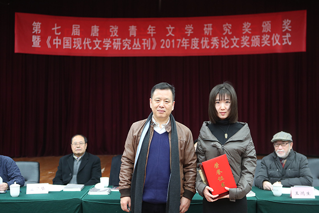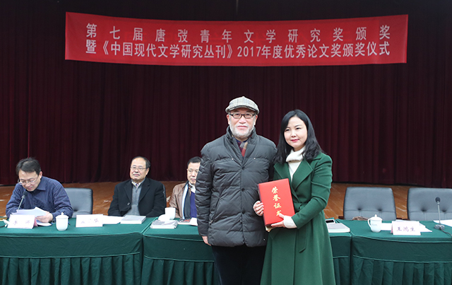 陳漢萍為《中國現(xiàn)代文學(xué)研究叢刊》2017年度優(yōu)秀論文獎(jiǎng)獲獎(jiǎng)?wù)呃顝V益頒獎(jiǎng)