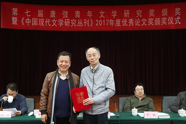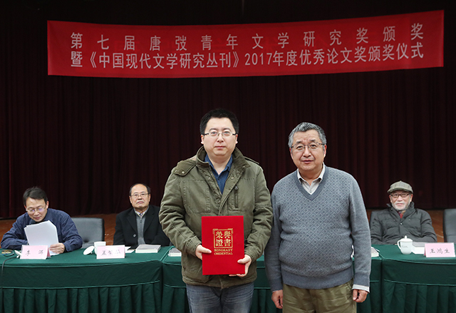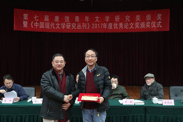 解志熙為《中國現(xiàn)代文學(xué)研究叢刊》2017年度優(yōu)秀論文獎(jiǎng)獲獎(jiǎng)?wù)唔n琛頒獎(jiǎng)