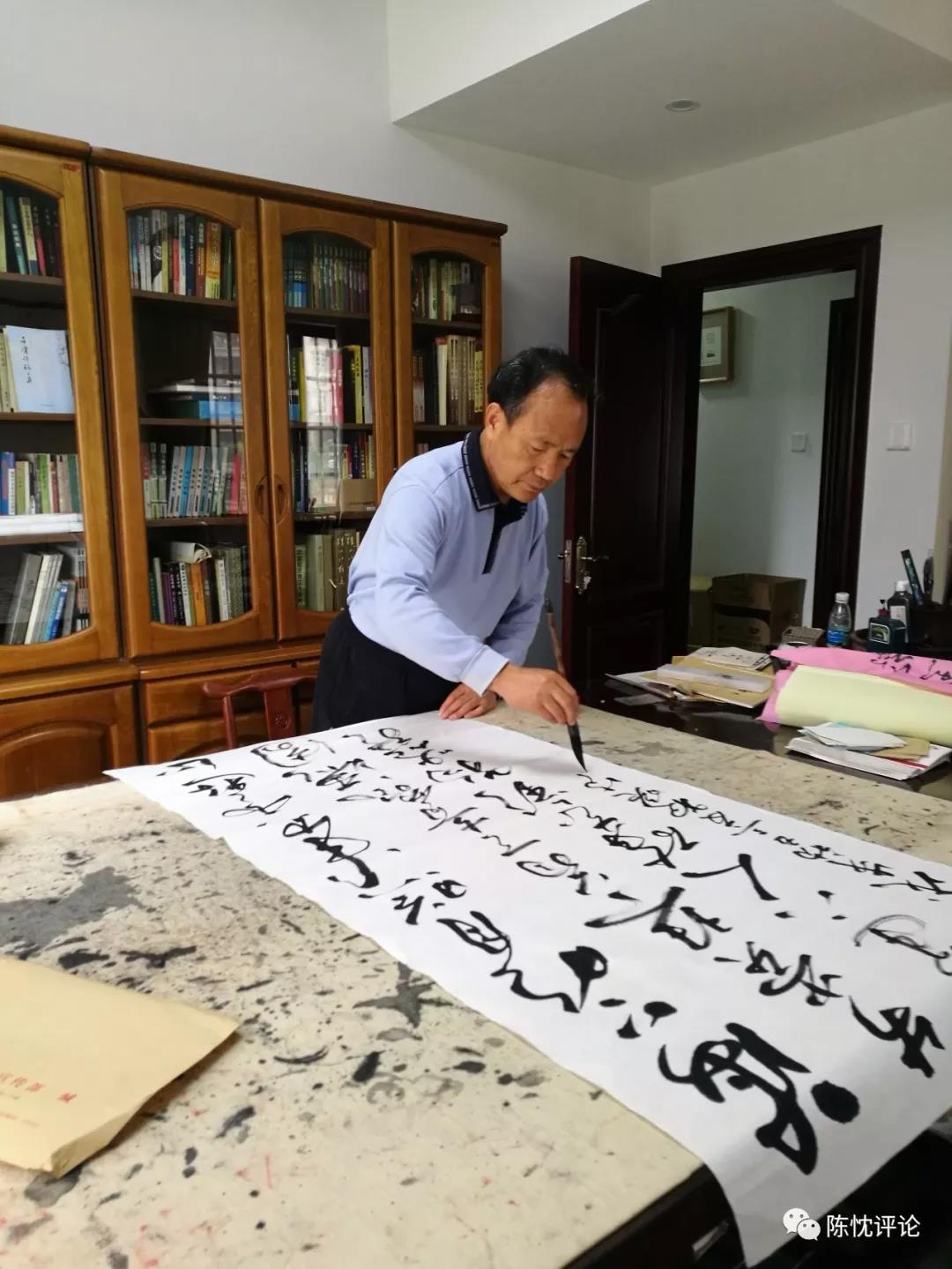 周文彰自小就愛學習,但沒有趕上好時候。剛剛在小學“描紅”、寫大字,初中卻中斷了?!拔母铩敝忻P在全社會大顯身手,用來寫大字報,可十三、四的周文彰,年齡太小,輪不上。直到50歲那年,他才重操毛筆,學起了書法。從那時到現(xiàn)在,無論是在海南宣傳文化工作崗位上,還是在國家行政學院副院長任上,與書法之緣,一旦結(jié)上,從來沒有斷過。行政職務(wù)上退下來,教學任務(wù)還在繼續(xù),顯得更忙了,除精心帶學生以外,許多正能量的社會活動也經(jīng)常邀請他參加。作為十二屆全國政協(xié)委員 ,任期內(nèi)的每年履職工作,無論是調(diào)研,還是提案,他都如期盡責的完成,調(diào)研途中,隨身之物是少不了毛筆的。