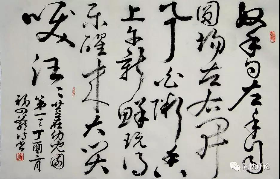 書法之美是中華民族獨有的創(chuàng)造,濃淡干濕和筆斷意連中是隱含有哲學思想的。周文彰的書法之道,所以“通”,是正如張申府先生著《所思》序中所釋:“通”,是我認為作哲學的最后目的。分析,多元,客觀,切實,都是“通”的門路,都是“通”的應(yīng)用。周文彰的書法正是在悟道中邁進了“通”之門后,等待著圓融的涅磐,這書法之道的根本性飛躍,也許十年,也許更長……