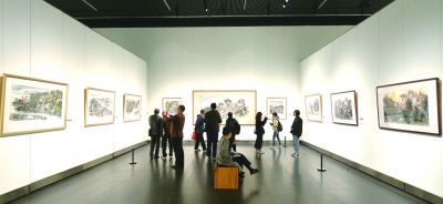 此次展覽為期10天,共展出130幅作品,其中50幅為體現(xiàn)徐州“一城青山半城湖”主題的“大美徐州”系列作品,藝術(shù)家用筆墨將壯麗而又秀美、古老而又年輕的徐州展示在人們面前,藝術(shù)地再現(xiàn)了黨的十八大以來徐州城市和鄉(xiāng)村的嶄新風(fēng)貌。(徐 文)