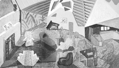 大型室內,洛杉磯(油畫、紙本、墨水) 大衛(wèi)·霍克尼(英國)