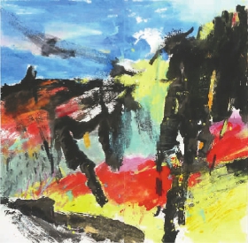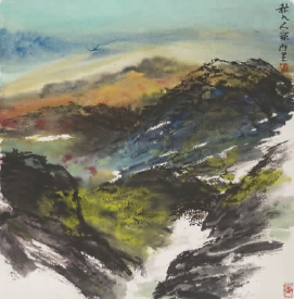 徐里的繪畫,根源于20世紀張大千、劉海粟的潑墨潑彩傳統(tǒng),這一傳統(tǒng)是在20世紀對西方繪畫的引入和借鑒基礎上形成的,它以中國畫的寫意筆墨為骨,引入西方繪畫的色彩交響,較好地解決了色與墨的關系。作為油畫畫家出身的徐里,對筆墨色彩關系的理解和運用遠勝于許多中國畫畫家,他的山水畫,以墨為骨,以濃重而融合性的用色而著稱。雖然傾情于色與光的交響,但徐里更追求傳統(tǒng)文人的精神內涵,雖然描繪的是高山大川,但他并不以具體的地景風貌為標志,而是將內心的激情,不露痕跡地轉化為中國山水畫的自由精神。在他的筆下,對自然的喜悅和熱愛,不經(jīng)意地從畫面中流露出來。徐里的繪畫,重點在群峰大山,所以其畫中的建筑與樹林,與大山融為一體,在朦朧中既突出了作品的渾然氣勢,又讓我們發(fā)現(xiàn)了畫家濃重而整體的用色之道。