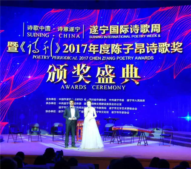 頒獎會頒發(fā)了《詩刊》2017年度陳子昂詩歌獎年度詩人獎、青年詩人獎、國際詩人獎、詩詞獎、青年詩詞獎、理論家獎、青年理論家獎、翻譯家獎,以及“子昂故里?詩意遂寧”全國詩歌創(chuàng)作大賽獎項。