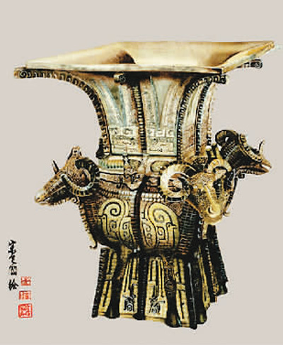 2007年,出土于寧鄉(xiāng)、我國現(xiàn)存最大商代青銅器四羊方尊回歸湖南的消息觸動(dòng)了鄔建美:“為何不用湘繡去繡一幅四羊方尊?”在刺繡過程中,為表現(xiàn)出青銅器的質(zhì)感,鄔建美運(yùn)用了8個(gè)色相、近百種色階變化的繡線,使用摻針、混針、滾筒針、散套針、齊針等針法,邊繡邊混色。而四羊方尊上那眾多類似羊角的祥云勾,只能用一絲線,甚至半絲線來繡。因針腳短、絲線細(xì)、摻入的色彩多,這幅僅90×70厘米的作品,鄔建美歷時(shí)兩年多才完成。文物專家震撼了,從來沒想到湘繡可以繡出如此逼真的四羊方尊。