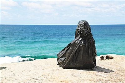這件雕塑題目出自唐代詩人李群玉所作的《石頭城》一詩:“長空橫海色,斷岸落潮聲”。雕塑以此為題恰當(dāng)?shù)貙⑵涮N(yùn)含的意境彰顯出來,加之雕塑所放置的環(huán)境背景是廣袤無垠的大海,這更為作品增添了許多浪漫情懷,詩句變得更加形象立體,雕塑亦凸顯了強(qiáng)烈的藝術(shù)魅力,可謂相得益彰。