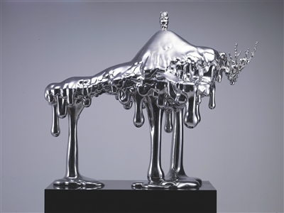 另一方面,作品以超現(xiàn)實的山石消融流淌的圖景,表現(xiàn)了一個虛靜空明、靜觀默想的純化世界,關(guān)于融化、流淌、凝固的主題讓人體味著時間的可變化性和空間的無秩序性,試圖喚起人們對自身日常的參照系統(tǒng)和外部世界的重新審觀,從而尋找到一個內(nèi)在與外延相互平衡的臨界點。作品中歷史與現(xiàn)實、抽象與具象、幻想與現(xiàn)實相互沖突、相互投射而又同存一體,凸顯了現(xiàn)代文明與傳統(tǒng)文化之間的解構(gòu)與重建,傳遞與融合。