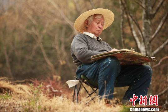 李玉雙在大自然中作畫。主辦方供圖