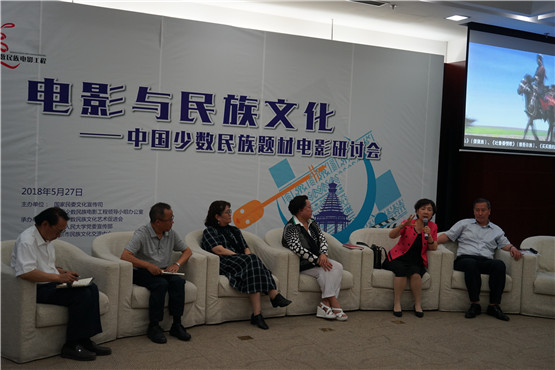 27日下午,活動(dòng)還舉辦了“電影與民族文化——中國(guó)少數(shù)民族題材電影研討會(huì)”。邀請(qǐng)民族文化、電影界的專家,包括編劇、導(dǎo)演、制片人、學(xué)者、演員、電影發(fā)行人等專業(yè)人士,與中國(guó)人民大學(xué)、中央民族大學(xué)的師生一起,以主旨演講、專家訪談、名家點(diǎn)評(píng)、專家與學(xué)生互動(dòng)交流等形式,就如何在新形勢(shì)下創(chuàng)作更多更好的民族題材電影、進(jìn)一步弘揚(yáng)各民族優(yōu)秀文化、擴(kuò)大民族題材電影的影響力等議題,進(jìn)行深入的交流和探討。會(huì)議由中國(guó)少數(shù)民族電影工程領(lǐng)導(dǎo)小組辦公室副主任、宣傳推廣部主任牛頌主持。