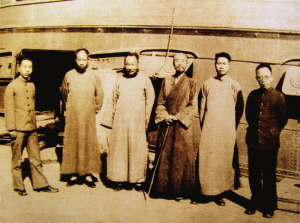 1929年10月,弘一法師(右三)與友人在寧波輪船碼頭合影。 寧波博物館供圖
