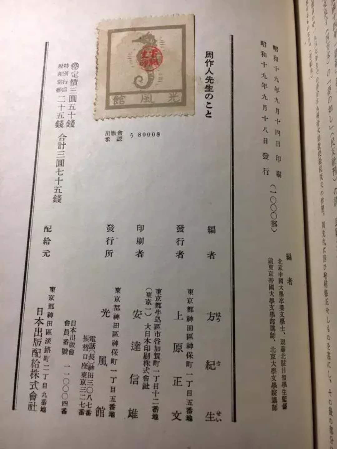 方紀生編的《周作人先生的事》的版權(quán)頁