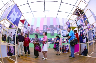 觀眾在天津美術(shù)館參觀全國(guó)非遺曲藝項(xiàng)目保護(hù)成果展。