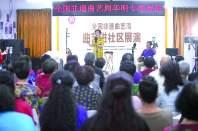 全國非遺曲藝周正在天津如火如荼地進(jìn)行。6月10日,一支非遺曲藝小分隊(duì)走進(jìn)天津市東麗區(qū)華明文化活動中心,為當(dāng)?shù)鼐用袼蜕暇实那囇莩觥?/p>