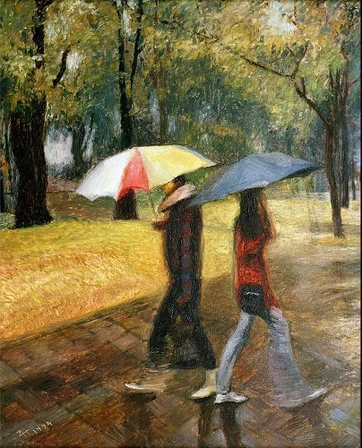 創(chuàng)作《秋雨》聯(lián)想到許多事,聯(lián)想到自己的情感經(jīng)歷,以及見過的,聽來的,書里,電影里的各種故事。有多少無緣的人,因為各種原因擦肩而過,又有多少有情人因為各種原因結緣,或者最終還是擦肩而過。難道這不是人類最復雜情感的一條永恒定律嗎?