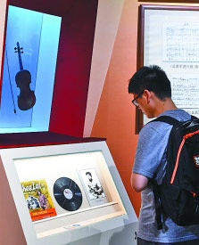 觀眾在了解《義勇軍進行曲》的創(chuàng)作歷程。新華社發(fā)
