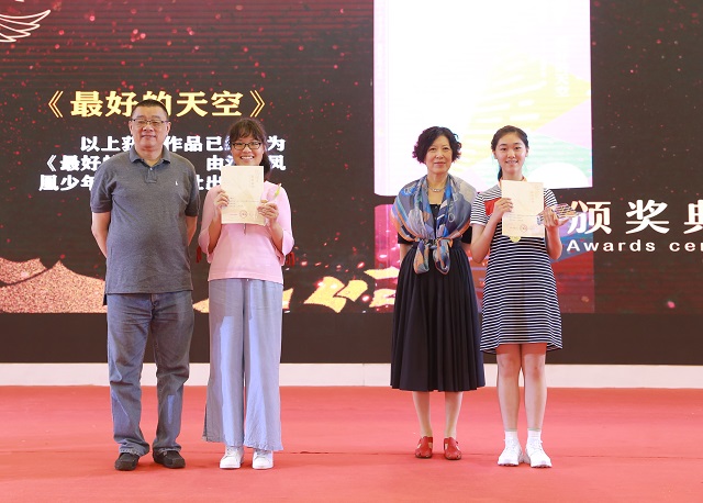 專家為獲少年創(chuàng)作獎(jiǎng)的獲獎(jiǎng)?wù)哳C獎(jiǎng)