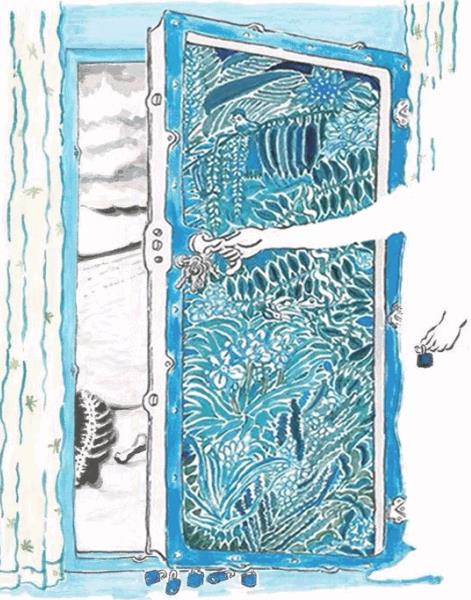 門、鎖、鑰匙、手。藍(lán)色豐茂植物的大門外,露出荒蕪的黑白風(fēng)景。這就是金宇澄提出的意味嗎?“這是個讀者比作者更聰明的時代”。