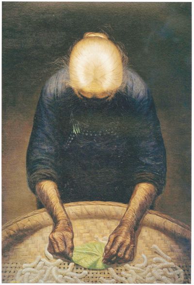 回國以后,從《故鄉(xiāng)組畫》到《重讀美術(shù)史》,在一個個系列創(chuàng)作中,我一直在反復(fù)思考自己的油畫藝術(shù)的文化身份,努力推進(jìn)油畫本土化的進(jìn)程,表達(dá)根植于中國文化的審美。在《重讀美術(shù)史》這組作品中,我用自己的繪畫語言,重新詮釋中西方美術(shù)史上的名作,并以此來進(jìn)一步闡述對中國當(dāng)代美術(shù)發(fā)展方向的思考,即當(dāng)中國油畫受到西方藝術(shù)啟蒙并完成學(xué)習(xí)、模仿階段之后,應(yīng)如何立足于本民族文化傳統(tǒng),回歸到熟悉的題材,重構(gòu)精神原鄉(xiāng),探求中國繪畫的當(dāng)代面貌。簡而言之,就是實現(xiàn)藝術(shù)創(chuàng)作的“中國精神”和“當(dāng)代語言”,而不僅僅是在西方當(dāng)代藝術(shù)的內(nèi)核上披件中式外衣。在創(chuàng)作中,我融入了許多從民間汲取的創(chuàng)作元素,比如剪紙、蠟染、木刻等。通過這些民間藝術(shù)和原始造型藝術(shù),我找到了重讀歷史的語言,也認(rèn)識到只有真正構(gòu)建起具有中國精神、中國氣派的當(dāng)代繪畫系統(tǒng),在與西方交流合作時,才能擁有平等的一席之地。