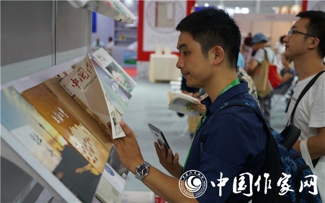 讀者在“中國(guó)作家出版集團(tuán)館”閱讀文學(xué)期刊