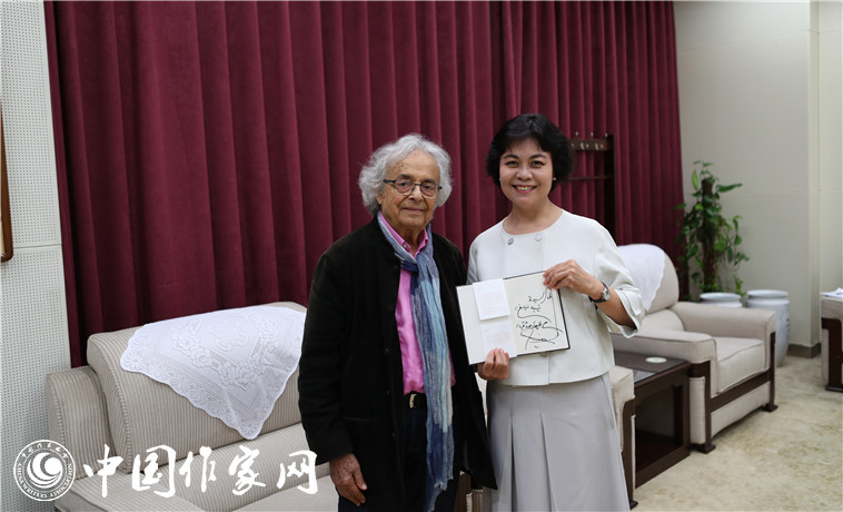 參加國(guó)際寫作計(jì)劃的敘利亞詩(shī)人阿多尼斯向中國(guó)作協(xié)主席鐵凝贈(zèng)送了自己的詩(shī)集