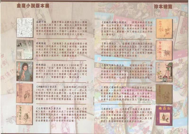 金庸在他的武俠小說中多處引用詩、詞、歌、賦,又恰到好處地點綴了各種民間小曲、地方小調(diào)以及青樓瓦舍、市井坊間的綺詞艷曲等,同時加入謎語、對聯(lián)、書法碑貼和古玩名畫。他還把、琴、棋、詩、書、畫等化而用之,成為武功的招式。