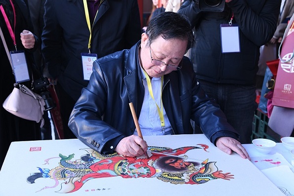 國家級非遺項(xiàng)目楊柳青木版年畫代表性傳承人馮慶鉅現(xiàn)場演示