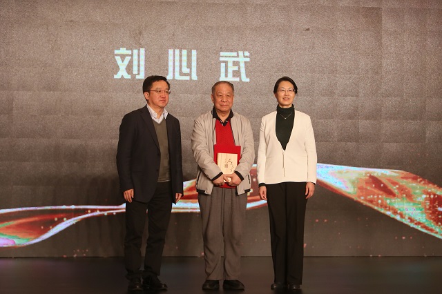 閻晶明、陳紅英為劉心武先生頒獎(jiǎng)