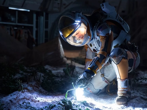 這不禁令人想起《鋼鐵蒼穹》《月球》《阿波羅18號(hào)》等以月球?yàn)楸尘暗目苹秒娪?,而月球種土豆的情節(jié)同樣出現(xiàn)在《火星救援》中。昨日之科幻,今日之現(xiàn)實(shí),現(xiàn)實(shí)與科幻的距離亦不過(guò)一墻之隔。