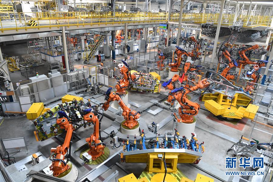 焊接機(jī)器人在浙江臨海的吉利汽車生產(chǎn)車間工作(2018年3月27日攝)。新華社記者 殷博古 攝