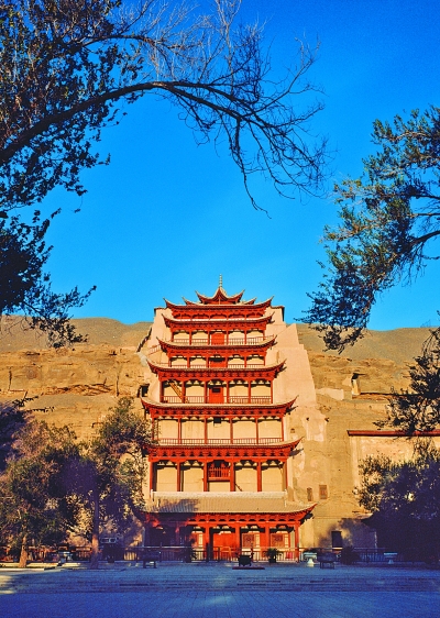 敦煌莫高窟九層樓。吳健攝