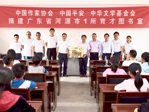 9日下午,“育才圖書室”授牌儀式在紫金縣舉行。楊黎光、肖克凡、胡性能、王十月、李曉東等采風(fēng)團(tuán)成員及中華文學(xué)基金會項(xiàng)目負(fù)責(zé)人劉娜、中國平安集團(tuán)扶貧辦常務(wù)副主任陳遙等參加授牌儀式。
