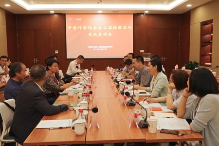 作家們?cè)谖膶W(xué)座談會(huì)上交流、暢談