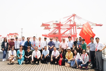 采訪團(tuán)在洋山港考察