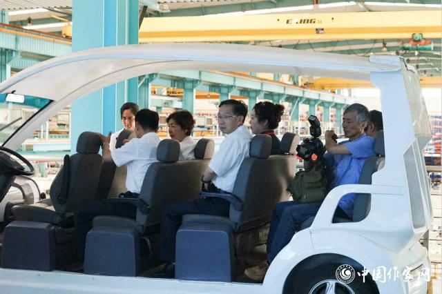 短短幾天的采訪行程緊湊而充實(shí),作家們深入經(jīng)濟(jì)生產(chǎn)第一線,對(duì)社會(huì)生產(chǎn)發(fā)展有了更深層次的了解。作家朱山坡被朝著世界最先進(jìn)科技奮勇直前的科技工作者的默默耕耘、舍我其誰的精神感染,“他們讓我親眼看到了時(shí)代之光、民族之魂,是文學(xué)書寫的最好對(duì)象。他們將會(huì)在我的筆下出現(xiàn),在我的作品里發(fā)光。”作家薛濤說,這次采風(fēng)讓大家深入生產(chǎn)一線了解先進(jìn)人物的不凡事跡,見證了共和國成立70年來取得的成就。他深刻感受到,作家的雙腳要牢牢踏在大地,讓靈感的種子在現(xiàn)實(shí)生活的土壤中萌發(fā),作家的創(chuàng)作要追求高境界、大格局,以世界眼光書寫家國情懷,以全球眼光關(guān)懷人類命運(yùn)。作家紀(jì)紅建在新時(shí)代造船廠看著一艘艘大型油船時(shí),想到這些船已經(jīng)或即將從這里起航,遠(yuǎn)銷歐、亞、美等國家和地區(qū),他感覺自己觸摸到了新中國成立70年來的巨大變化,也深刻感受著新時(shí)代中國制造的豪邁,更感受到了奮勇拼搏、銳意創(chuàng)新的中華民族精神數(shù)千年來的傳承。