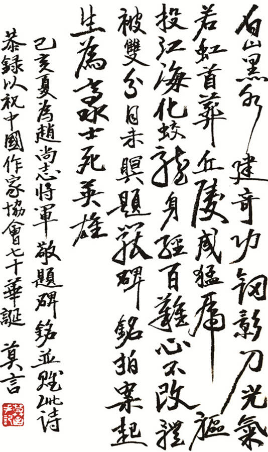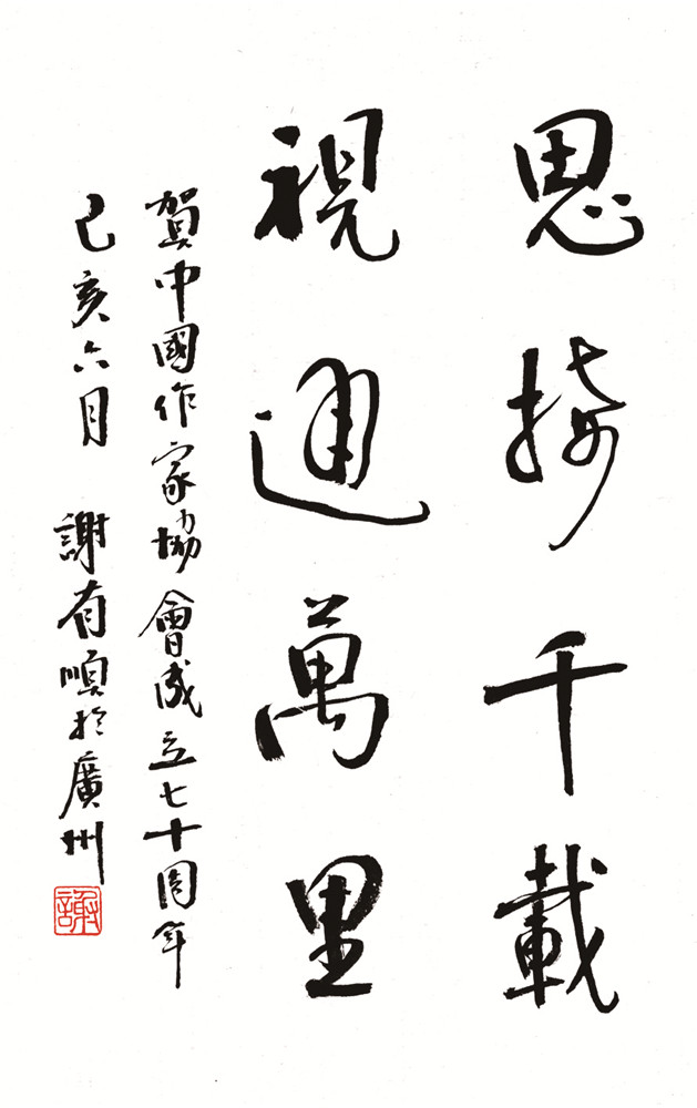 文學(xué)名家揮毫潑墨祝賀中國(guó)作協(xié)成立70周年