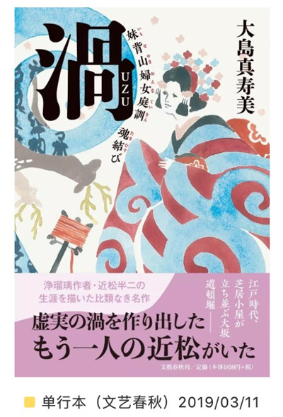 第161屆直木獎 獲獎作品是《渦——妹背山婦女庭訓(xùn)魂結(jié)》 ,作者大島真壽美。小說講述凈瑠璃作者近松半二波瀾壯闊的一生,江戶時代,大阪道頓堀,天姿聰穎的近松半二被酷愛凈瑠璃的父親帶入了戲棚,從此與凈瑠璃結(jié)緣。從父親手里,他接過了近松門左衛(wèi)門流傳下來的硯臺,由此開啟創(chuàng)作之路。他也曾被年少好友兼競爭對手的并木正三所超越,曾被凈瑠璃大師吉田文三郎責罰,但近松半二無法停下創(chuàng)作的步伐。經(jīng)過漫長歲月,《奧州安達原》《妹背山婦女庭訓(xùn)》等名作終于橫空出世?!澳怨P尖滴落,最終,我也化作了文字……”日本讀者評論這本書時說道:“描寫凈瑠璃作家近松半二一生的力作,可以從中感受到江戶時代大阪熱騰騰的煙火氣撲面而來。讀完后有點明白了歌舞伎和人形凈瑠璃的區(qū)別,不過還是有很多get不到的點,果然還是要親自去現(xiàn)場看了才能明白吧?!?/p>