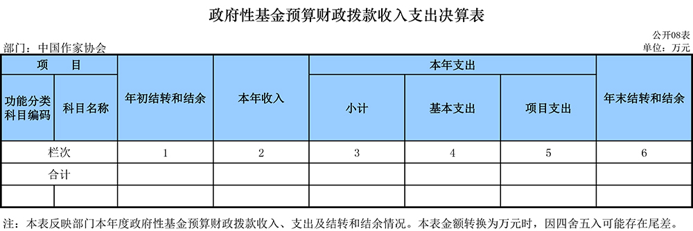2018年中國(guó)作協(xié)部門決算表如下: