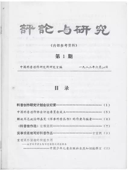 為配合中國(guó)科普作協(xié)鼓勵(lì)開(kāi)展科普評(píng)論,培養(yǎng)科普評(píng)論人才,科普所在會(huì)上決定出版內(nèi)部參考資料《評(píng)論與研究》?!对u(píng)論與研究》第1期很快就在當(dāng)年6月面世,水準(zhǔn)可嘉,其后各期也多有看點(diǎn)。我所見(jiàn)到的最后一期《評(píng)論與研究》是1986年12月出版的第10期,刊末仍有“征稿簡(jiǎn)則”,但我不知此刊一直出到何年何時(shí)。