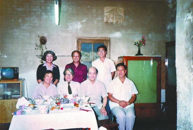 參加嚴文井家宴的部分來賓的留影 前排左起:康志強、水上勉、嚴文井、吳正格 后排左起:佐藤純子、中野孝次、陳喜儒